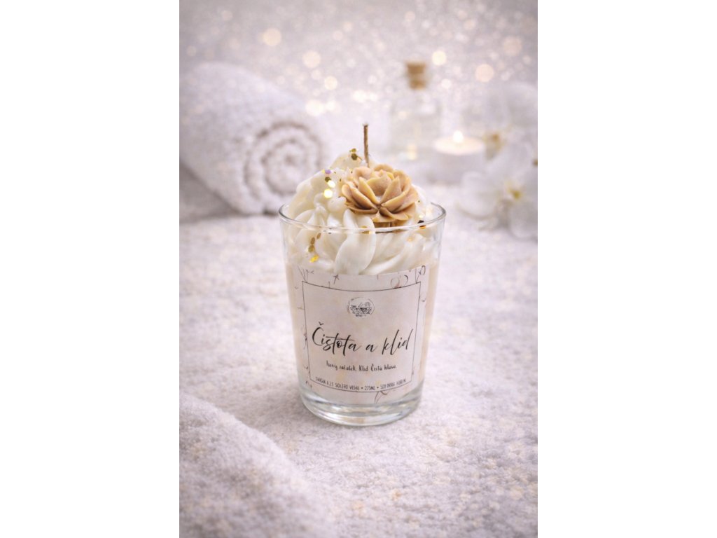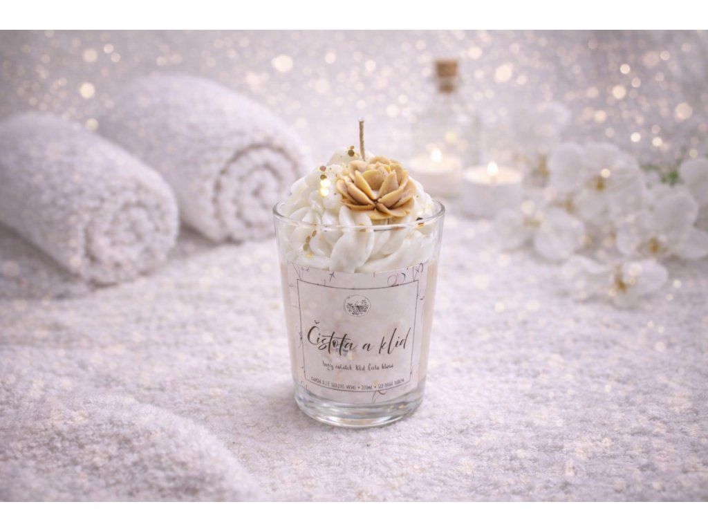 ČISTOTA A KLID je svíčka vytvořená pro momenty ticha, pohody a vnitřního míru. Připomíná čerstvě povlečenou postel, teplou deku a klidné večery, kdy se svět zpomalí a všechno je tak, jak má být.
