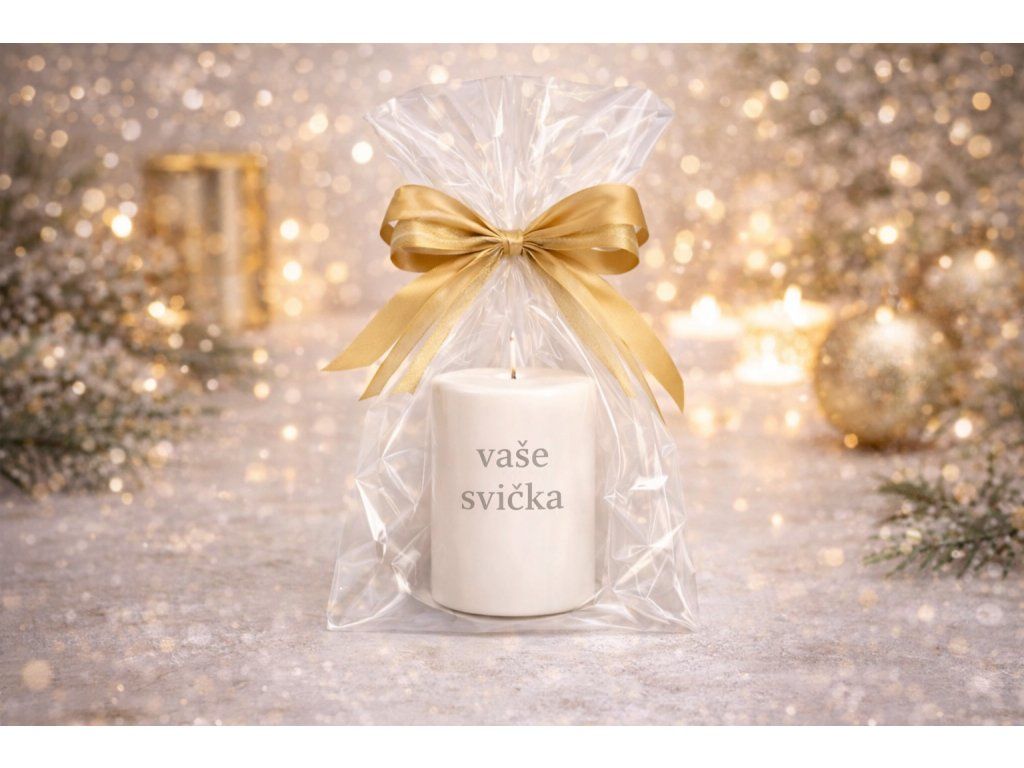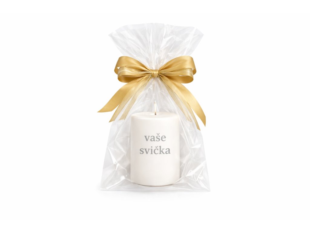 Svíčka je zabalená do celofanu a ozdobená mašlí, takže je připravená rovnou k darování 🎁✨