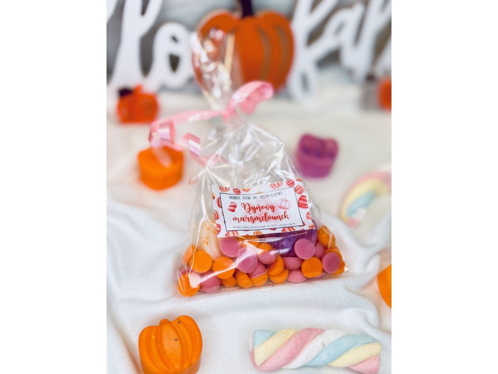 Představ si podzimní večer – venku padá listí, ty se zachumláš do deky a místností se line sladká vůně pečené dýně zalité vanilkou a rozpuštěnými marshmallows… Přesně tak voní náš vosk Dýňový maršmelounek.