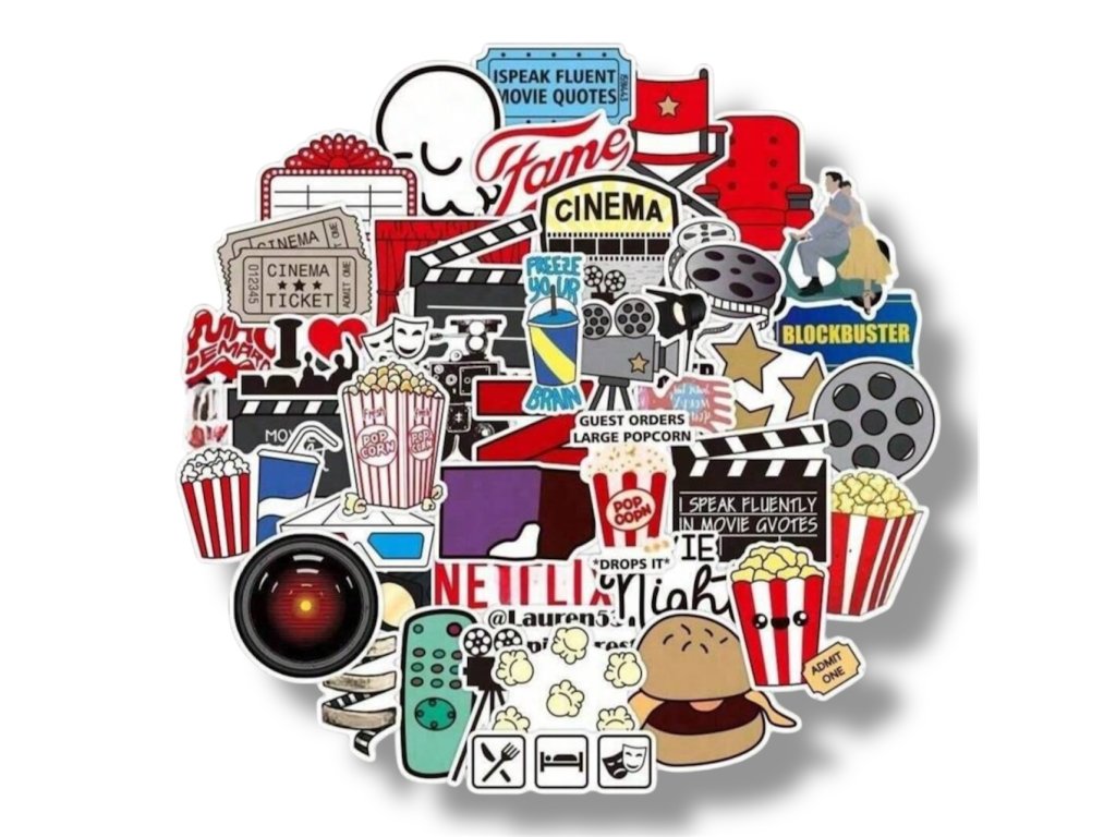 Každá samolepka zachycuje ikonické postavy, loga, hlášky a symboly ze světa filmů – od klasiky až po moderní trháky.