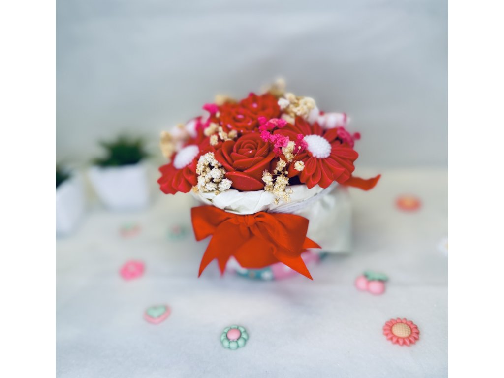 Velikost M – flowerbox se 4–5 voskovými květinkami 🌸, krásný dárek, který potěší srdce.