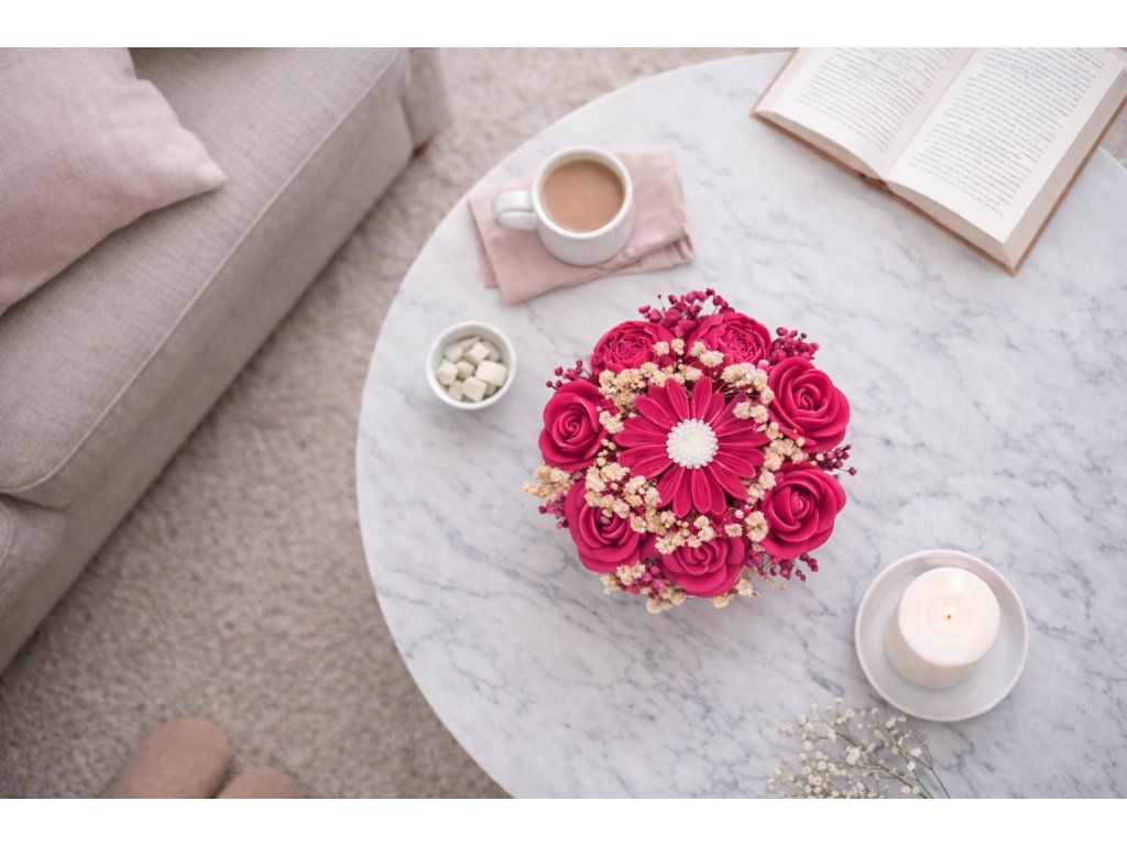 Pro všechny, kdo milují výraznější a luxusní tóny – tmavě růžový flowerbox je ztělesněním romantiky a smyslnosti. Voskové květiny v sytě růžových odstínech působí elegantně, originálně a nádherně provoní interiér. Každá kytička je ručně vyráběná z vonného vosku, takže zdobí i voní zároveň.