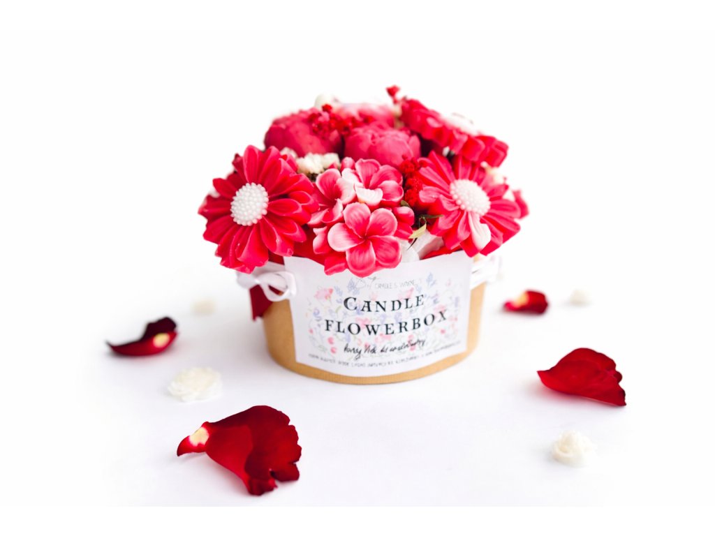 Velikost M – flowerbox se 4–5 voskovými květinkami 🌸, krásný dárek pro radost.