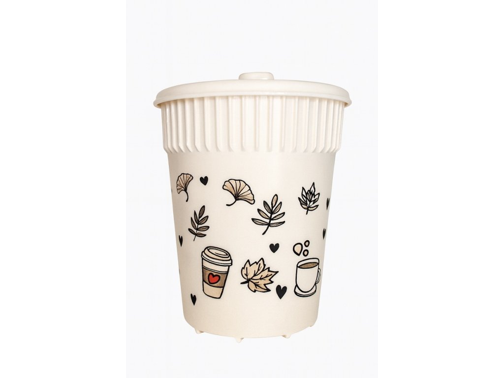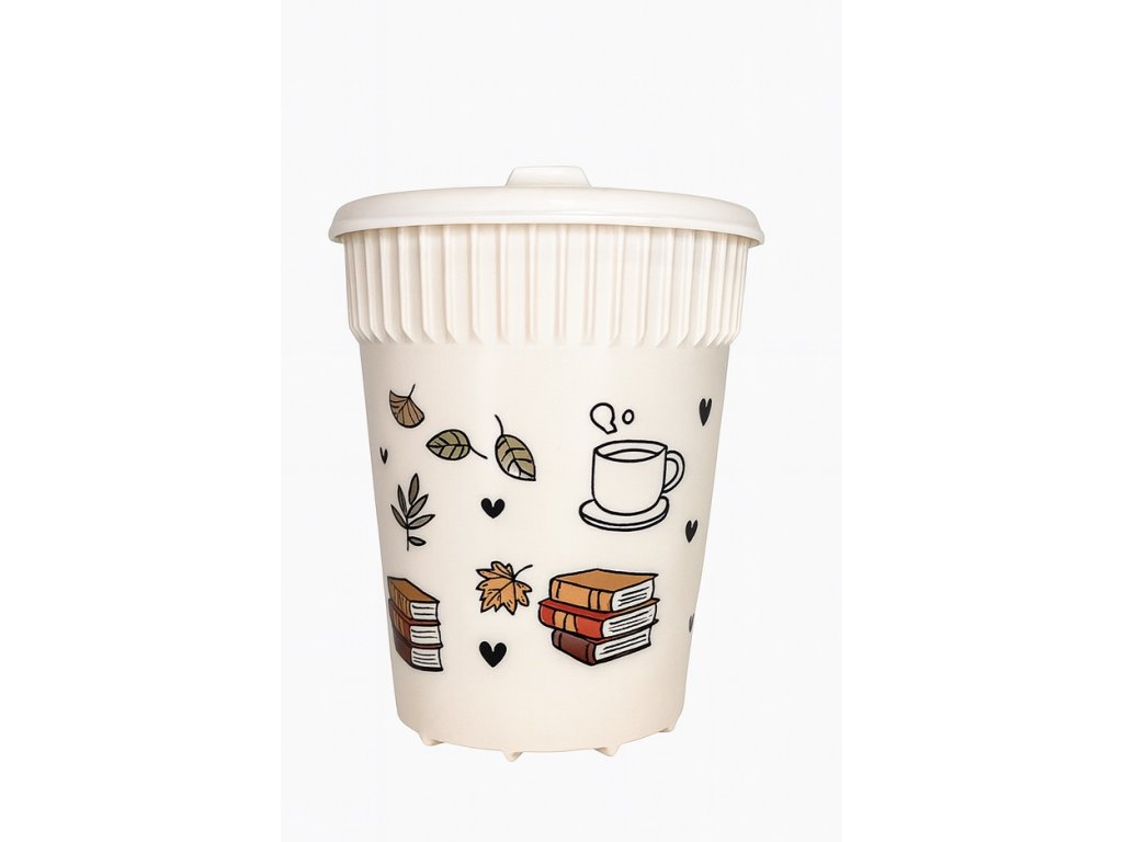 Knihovna v kelímku je jako malý literární úkryt, který si můžeš vzít všude s sebou – do práce, školy, do postele i na cestu vlakem. Jemný knižní design připomíná chvíle klidu, tepla a pohody, kdy se svět na okamžik zastaví a jsi jen ty a tvůj oblíbený příběh.