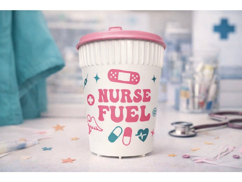 HOT CUP – NURSE FUEL je kelímek vytvořený přesně pro ty, kteří dávají ze sebe maximum – každý den, každou směnu. Pro zdravotní sestřičky, které ví, že káva není jen nápoj, ale nutné palivo pro zvládnutí dlouhých hodin, nočních služeb i náročných momentů.