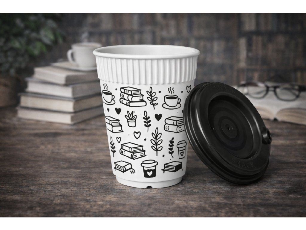 Někdy nepotřebuješ nic víc než dobrou kávu, klid a chvíli pro sebe. Tento HOT CUP s černým základním designem, motivy knih, kávy, srdíček a jemných lístků je stvořený pro ty chvíle, kdy chceš zpomalit a vypnout. Elegantní a přitom útulný vzhled vytváří dokonalou atmosféru pro „coffee & chill“ momenty. 📚☕🖤