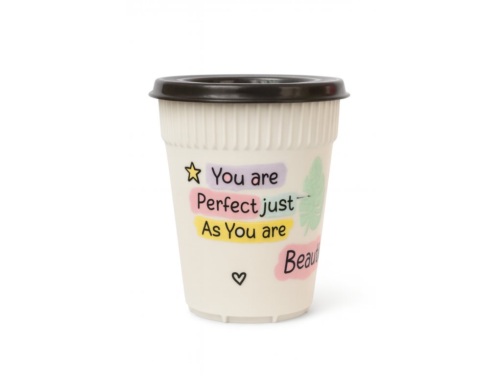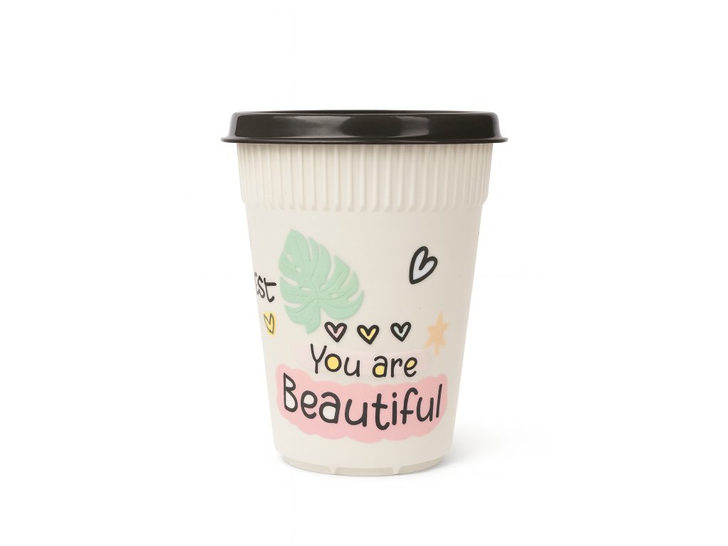 Tenhle mini kelímek ti zvedne náladu ještě dřív, než dopiješ první doušek. Pastelové barvy, malé srdíčka a sladký nápis You are Beautiful působí jako malá denní affirmace – připomínka, že i chaos má dny, kdy může být hezký. 💗