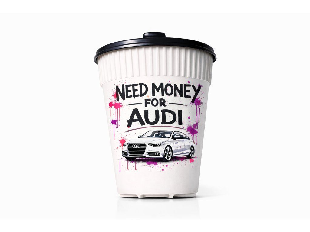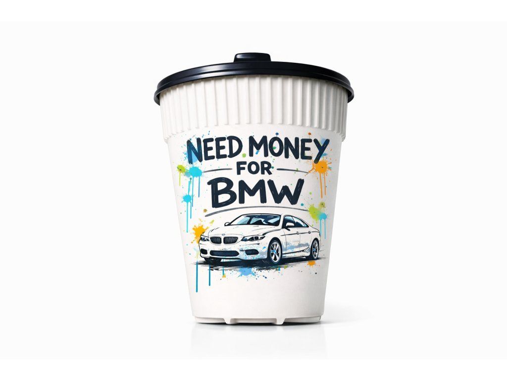 „Need money for …“ – doplň si vlastní značku auta a vytvoř si kelímek přesně podle sebe.
