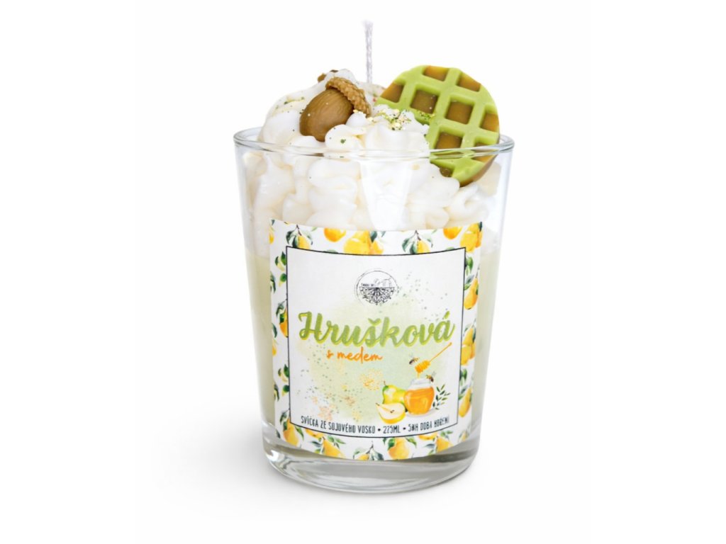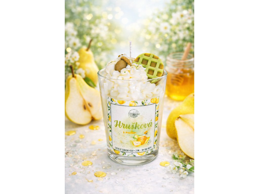 Šťavnatá hruška dodává svěží ovocný tón, který se krásně prolíná se sladkostí a hebkostí medu. Dohromady tvoří dokonale vyváženou kombinaci, která je sladká, ale ne těžká – ideální pro podzimní večery plné klidu a pohody.