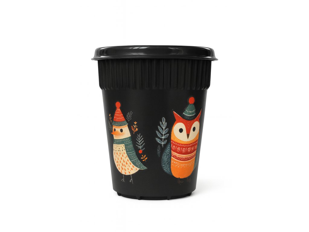 Tenhle kelímek je jako kousek Vánoc v ruce – černý matný povrch doplněný zimní ilustrací soviček působí hřejivě a kouzelně. Perfektní na espresso, malou kávu nebo degustační svařák. Ideální do kabelky, auta, do práce nebo jako doplněk ke sváteční atmosféře.