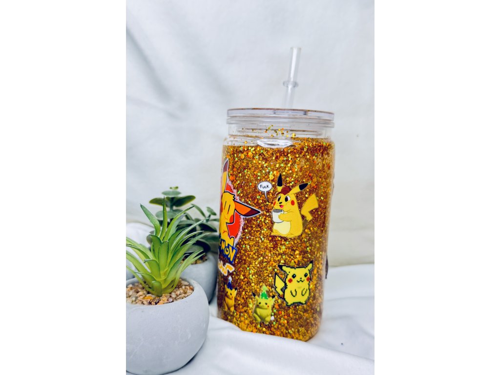 Uvnitř kelímku se jemně třpytí tekutina s glitry laděnými k designu. Pokud si přeješ jinou barvu třpytek, napiš ji do poznámky u objednávky – ráda ti kelímek přizpůsobím na míru!