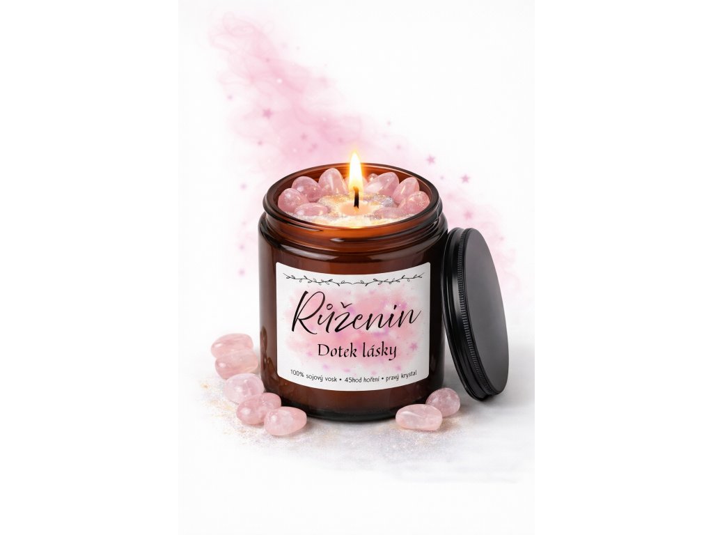 Svíčka Růženín – Dotek lásky vznikla jako tichý prostor pro vnímání jemných energií. Růženín je po staletí spojován se srdcem, sebeláskou a harmonickými vztahy. Jeho energie je klidná, podpůrná a hluboce ženská.