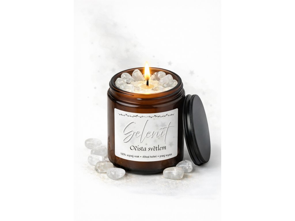 Svíčka Selenit – Očista světlem vznikla jako jemný prostor pro zklidnění, uvolnění a energetickou očistu. Selenit je po staletí vnímán jako krystal světla a čistoty. Je spojován s jasností, harmonií a schopností uvolnit nahromaděné napětí a těžké energie.