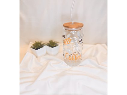 Keep calm and make coffee. Sklenička, která tě každý den vrátí do pohody. Stylový design s dřevěným víčkem a skleněným brčkem – ideální na iced coffee, matchu i moment klidu pro...