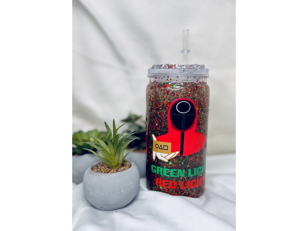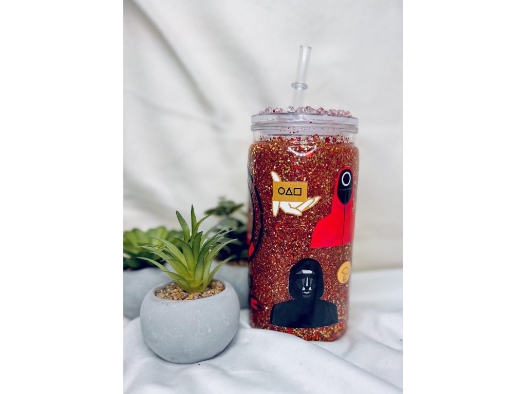 Přenes se do světa napětí, soutěže a silných nervů – samozřejmě stylově. Tento kelímek inspirovaný ikonickým seriálem Squid Game přináší temný design, červené detaily a hravý kontrast mezi nebezpečím a elegancí.