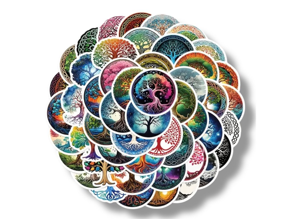 Každá samolepka představuje propojení země a nebe – kořeny, které tě drží pevně, a větve, které rostou směrem k tvým snům. 🌳