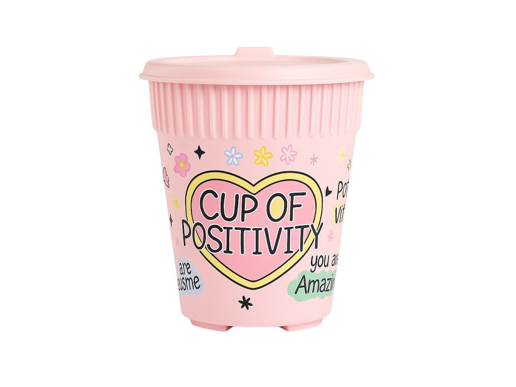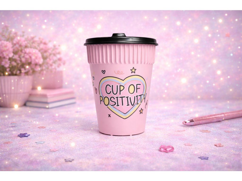TO GO kelímek Cup of Positivity je tu, aby ti připomněl, že i obyčejné ráno může být výjimečné. Jemný, pozitivní a plný dobré energie – tvůj dokonalý společník na cestu do práce, školy nebo jen tak do města.
