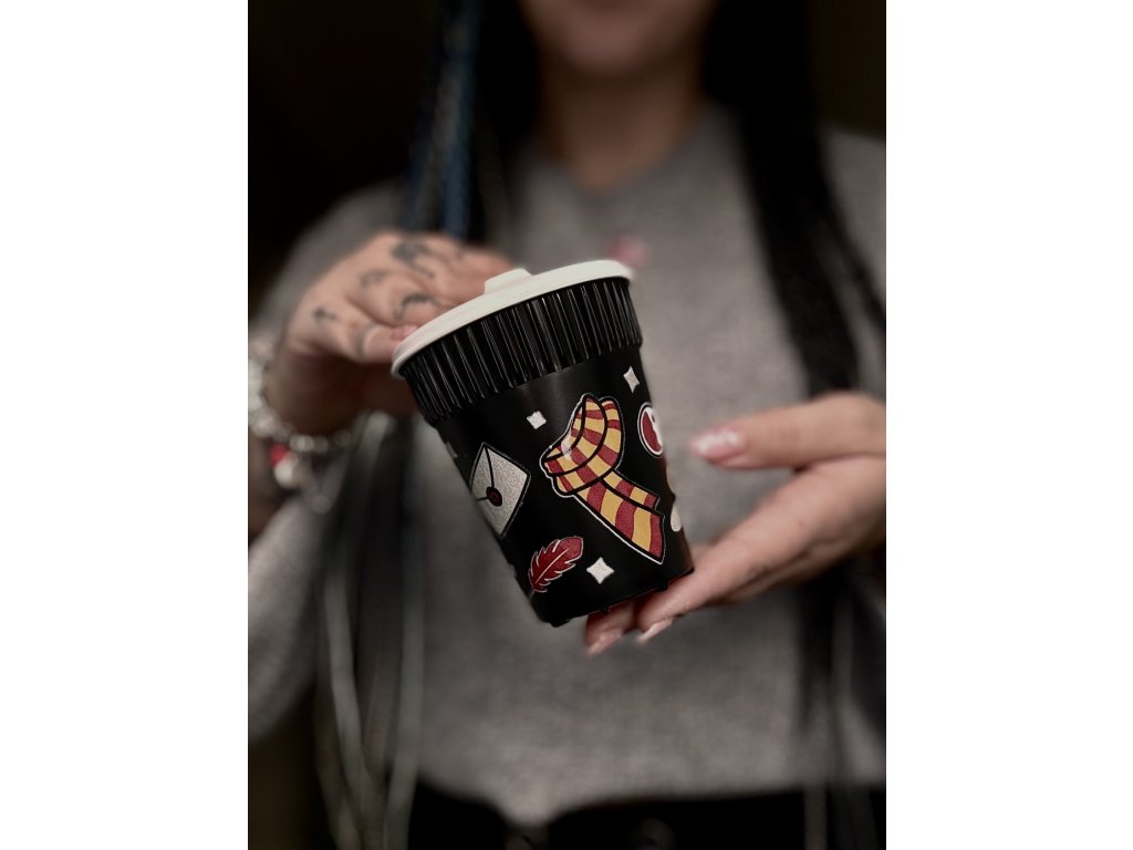 TO GO kelímek Harry Potter přináší kapku magie do každého dne. Stylový, elegantní a plný čarodějné energie – stane se tvým oblíbeným společníkem na ranní kávu, čaj nebo večerní elixír pohody.
